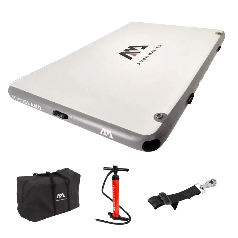 La plateforme gonflable Aqua Marina Island est un Ă®lot flottant parfait pour de nombreuses activitĂ©s comme nager, s’amuser sur l’eau, se dĂ©tendre ou mĂŞme travailler sur la coque de votre bateau. Construite dans des matĂ©riaux rĂ©sistants, ses dimensions autorisent de 1 Ă 4 personnes dessus et son astucieux système d’oeillets permet de l’attacher Ă des supports extĂ©rieurs et mĂŞme de fixer plusieurs plateformes entre elles si besoin !